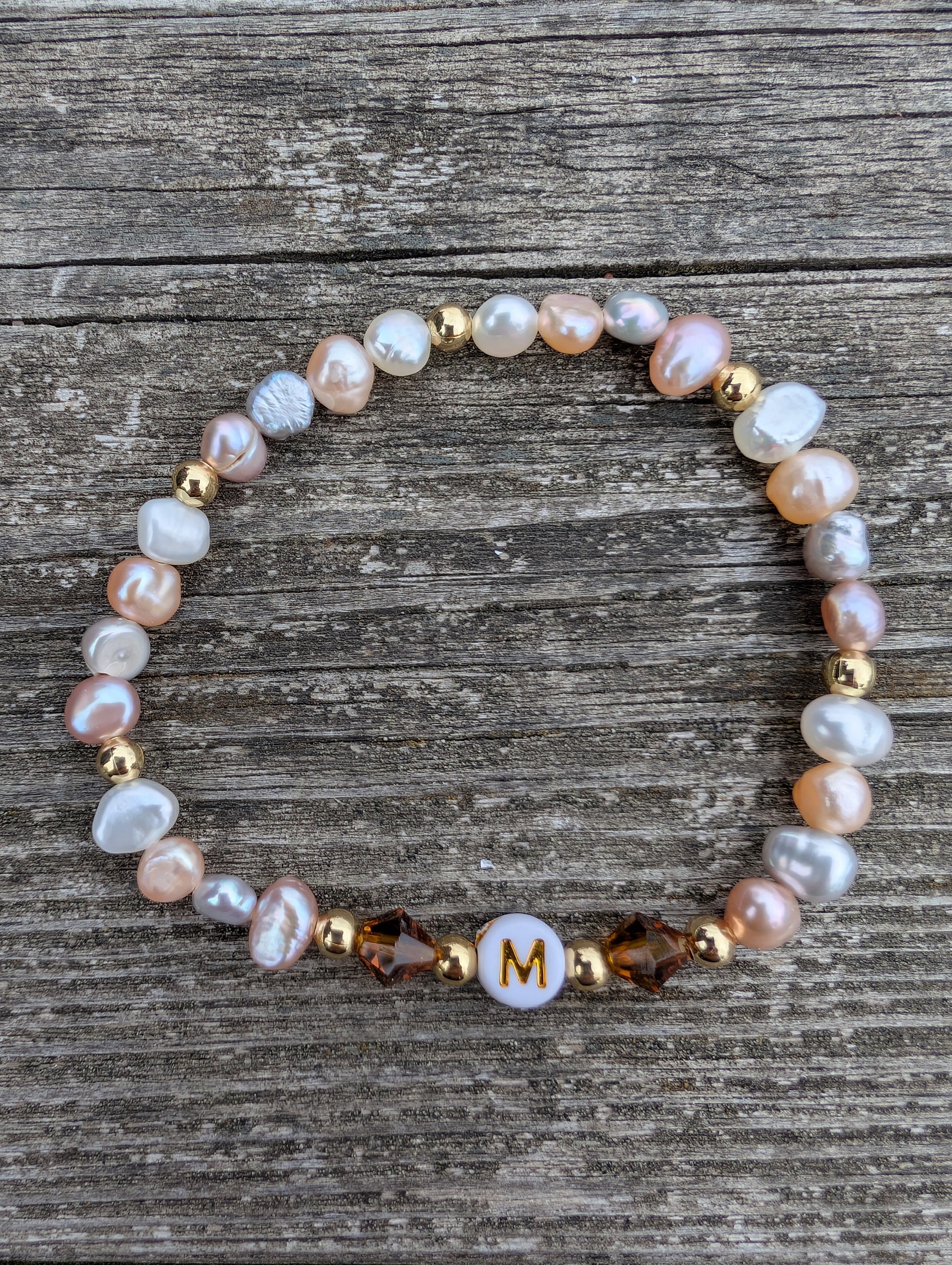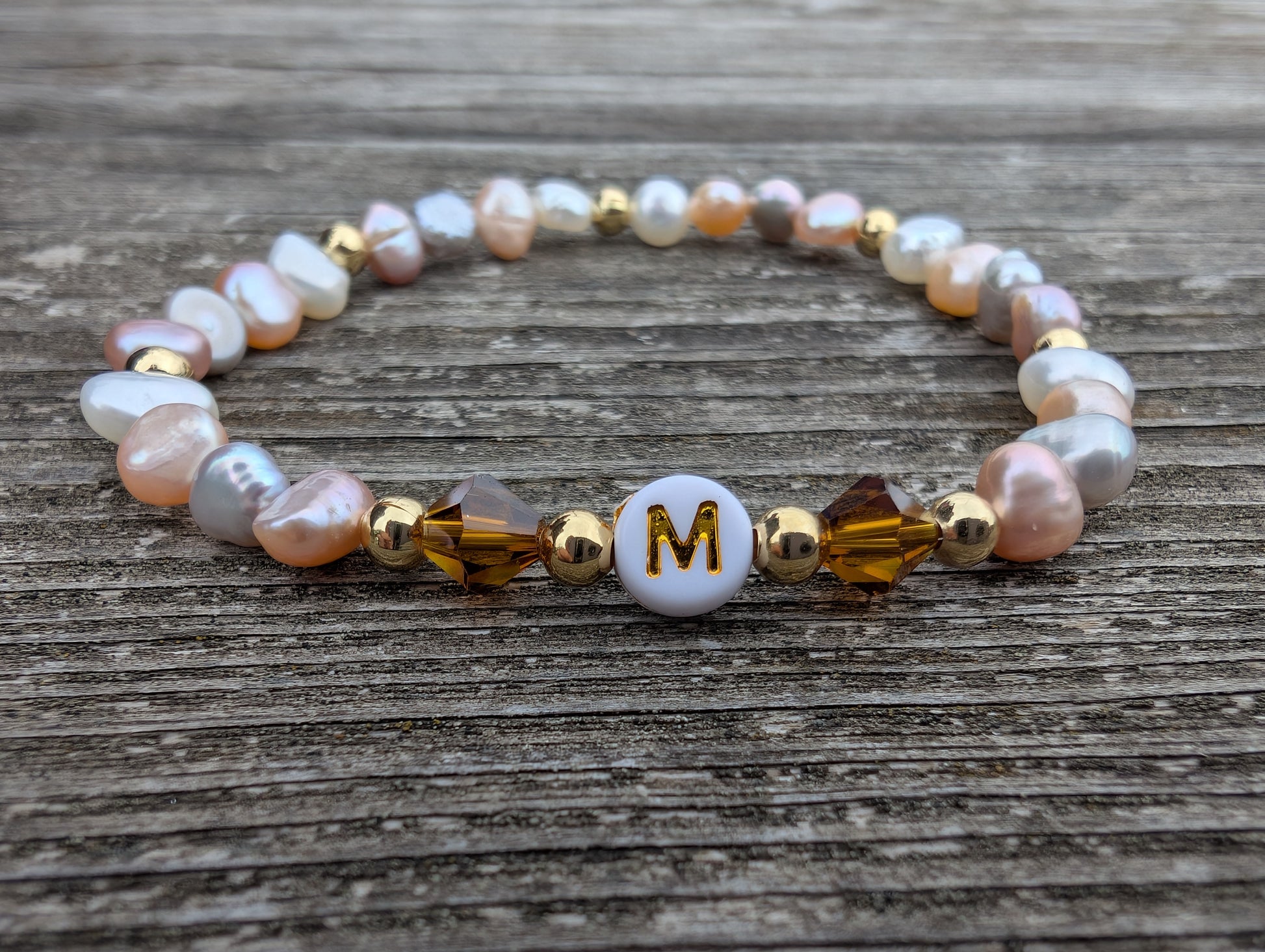 Custom Baroque Pearl Bracelet β Initial & Birthstone Gift